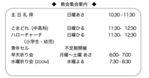 高麗聖書教会ってどんな教会? 2025 10/14 Church Information 2025年10月5日2025年10月14日 Church Information よかったらシェアしてね! URLをコピーしました! URLをコピーしました! 礼拝・集会案内 牧師紹介 この記事を書いた人 komaseisho-admin 関連記事 高麗聖書教会年間テーマ 2025年10月14日 教会イベント 2025年10月7日 牧師紹介 2025年10月6日 礼拝・集会案内 2025年10月4日 特定非営利活動法人あまやどり 2025年10月3日 くりくり元気体操 2025年10月2日