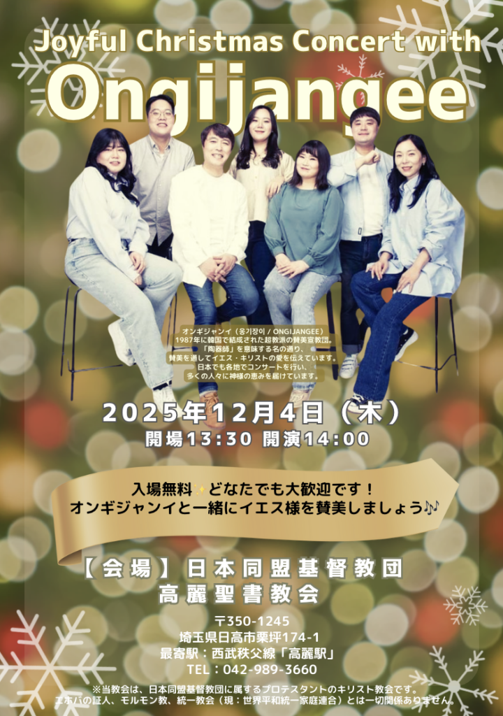2025年12月4日(木)、高麗聖書教会にて「オンギジャンイコンサート」が開催されました。